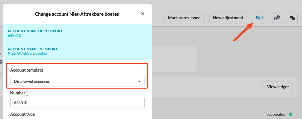 For that reason, you will see a blue line in the "Disallowed expenses" template at the categories related to car costs. When you click on this blue line, you are automatically redirected to the "Car costs (disallowed expenses)" template, where you can complete the details further.From the second year onwards, you can make use of the "Copy data" function so you don’t have to reassign the accounts every year. You only need to check whether there are any additional accounts in the new year that still need to be linked to a category.If your office works with a uniform chart of accounts, the admin user can set at office level that certain accounts are automatically linked to the # of a specific category. This can be applied to all categories, or limited to a selection—for example, only the "67" accounts for non-deductible taxes.
