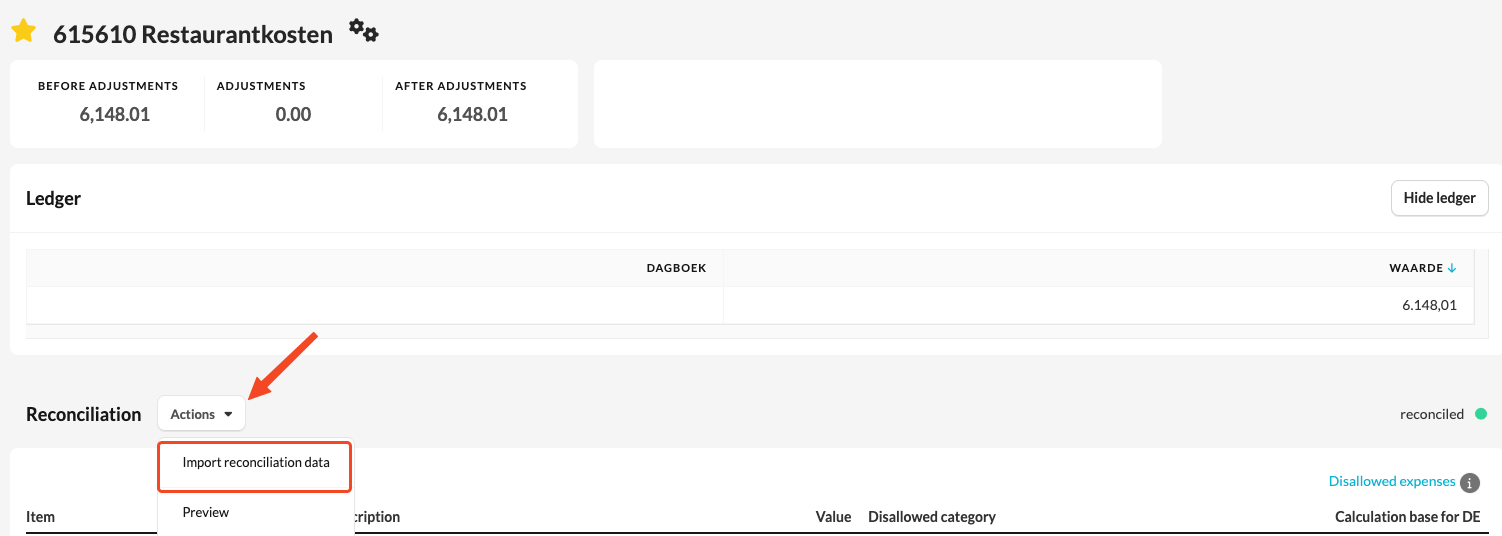 Note: In these reconciliations, no calculation of disallowed expenses is made yet. Here, you only indicate which amount belongs under which category. If an amount does not belong to a specific category, you may leave the "Category" field empty.