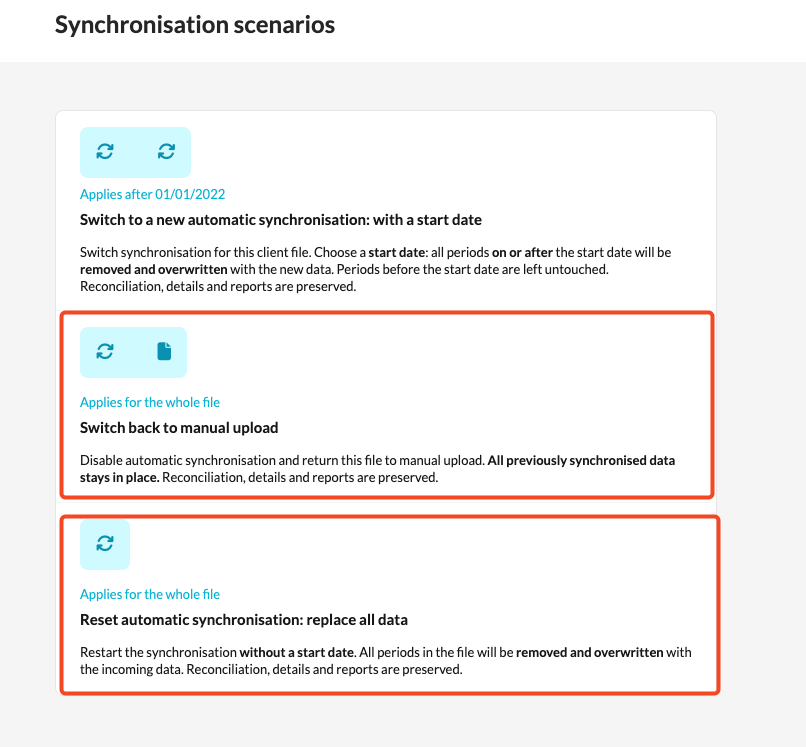 Resetting the synchronisation will overwrite all existing ledgers in the file with new data.Editing the Sync transfer date