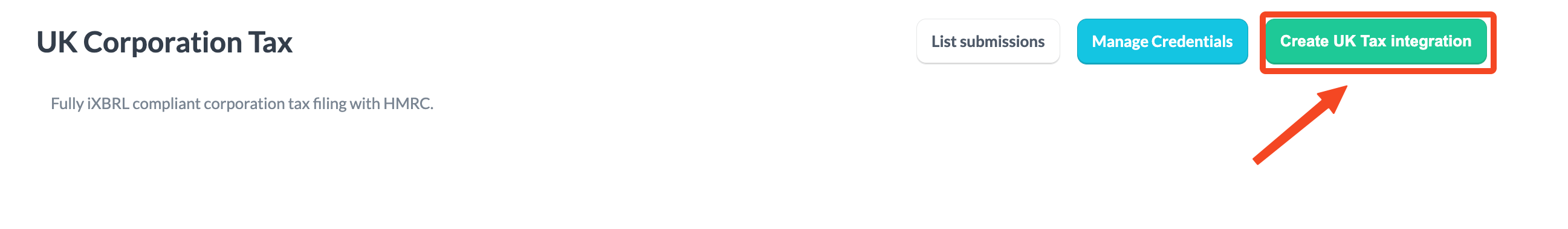 - Click the 'Create UK Tax integration' button in the top right corner.