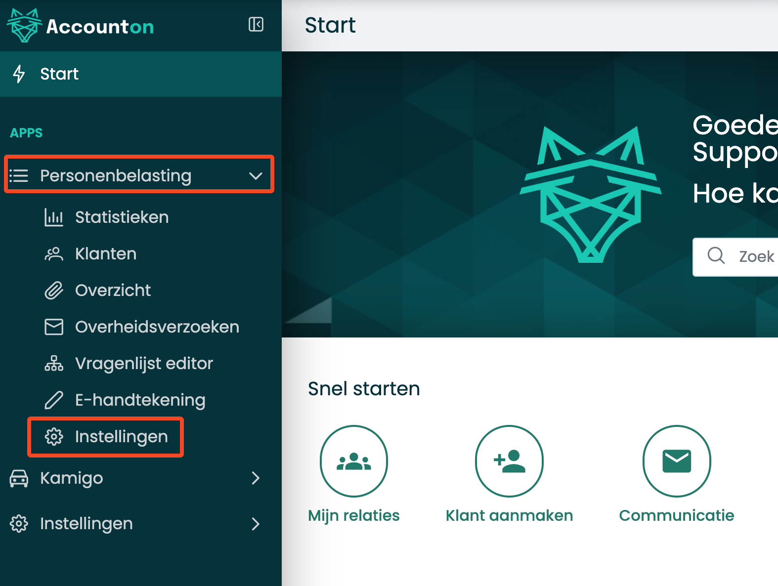 - Na het klikken op de knop kom je in de Accounton Backoffice.