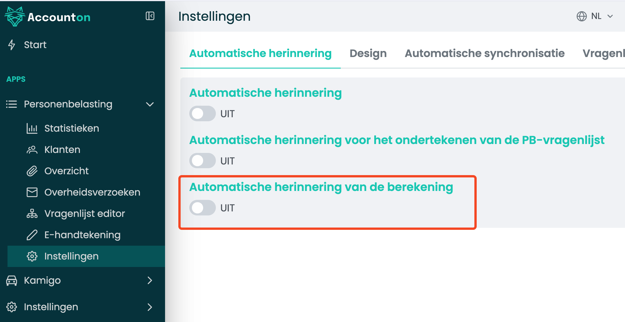 - Stap 4: Automatische herinneringen voor het berekeningsvoorstel in Accounton activeren