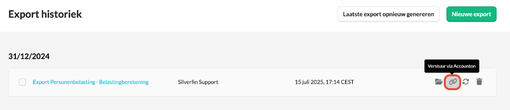 - In de Export historiek verschijnt een knop (zie screenshot) om het voorstel te delen.