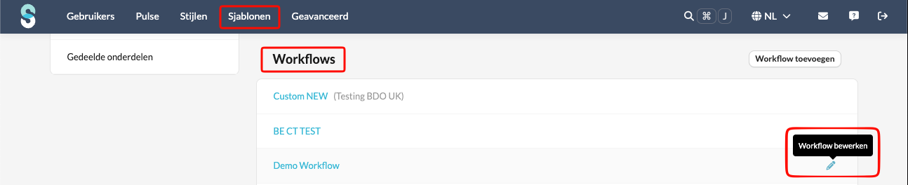 - Klik op het potloodpictogram van de workflow die moet worden aangepast: