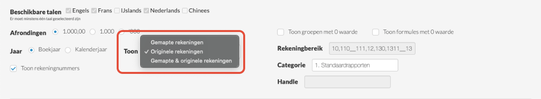 Deze opzet zorgt ervoor dat je rekeninggegevens kunt bekijken op de manier die het beste bij je workflow past, of je nu de voorkeur geeft aan gemapte rekeningen, originele rekeningen of beide.